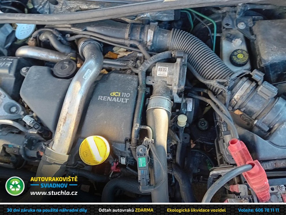 Přední nárazník, kapota, přední světlo, blatník, zadní světlo, zadní nárazník, zadní víko se sklem, boční dveře, zrcátka, disky, motor ( K9K57 ) , vstřikovače, vstřikovací čerpadlo, turbo, alternátor, startér, vývěva, převodovka, kompresor klimatizace, díly klimatizace, servořízení, servočerpadlo, poloosa, hlavní brzdový válec, posilovač brzd, přední a zadní brzdový třmen, přední náprava, přední těhlice, zadní náprava, podvozkové díly, jednotka ABS, čidlo ABS , boční skla, motorek centrálu, motorek stěrače, táhla stěrače, ventilátor topení, rádio, a spousta dalších dílů z tohoto vozu.